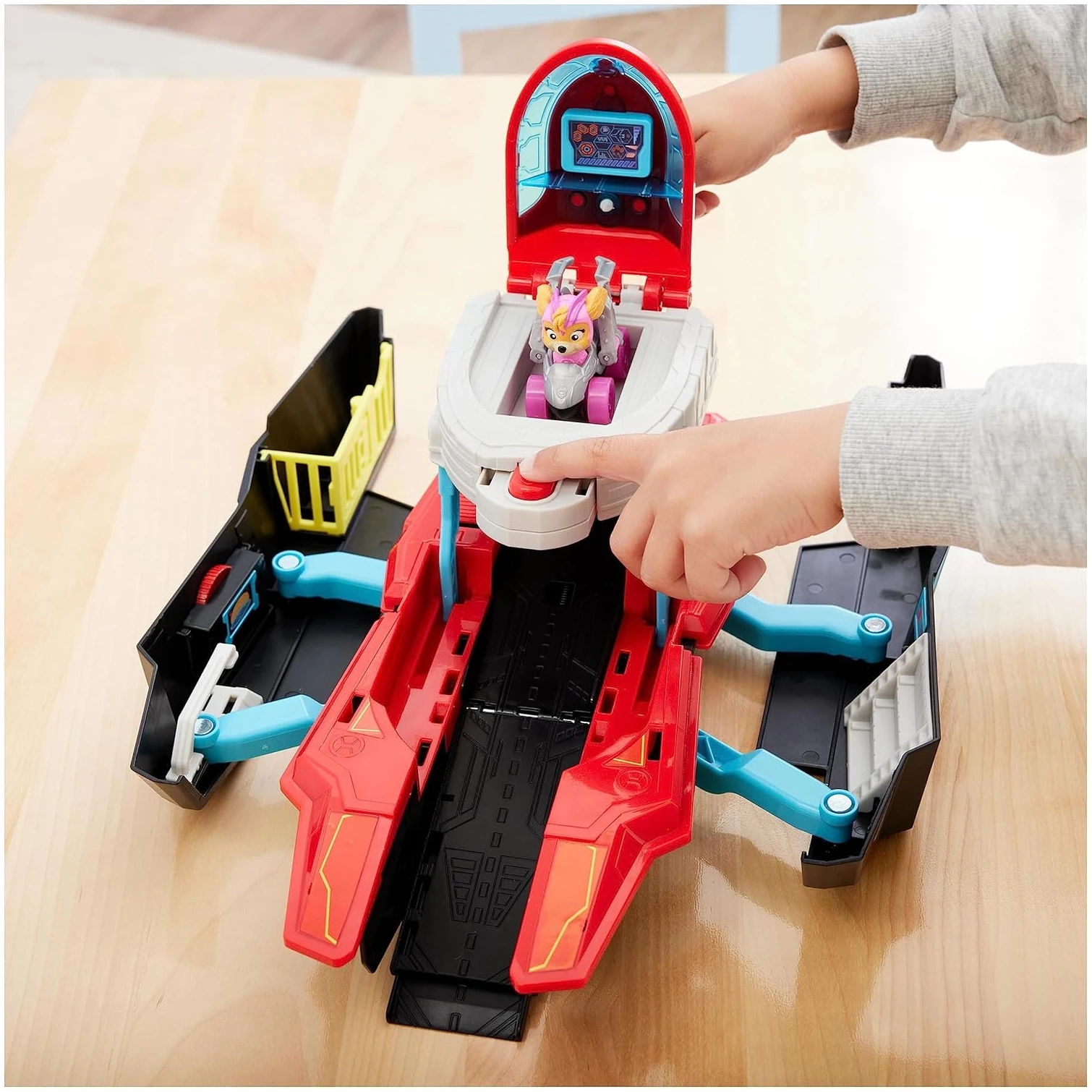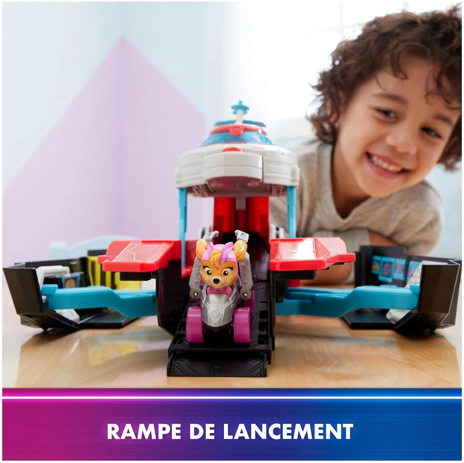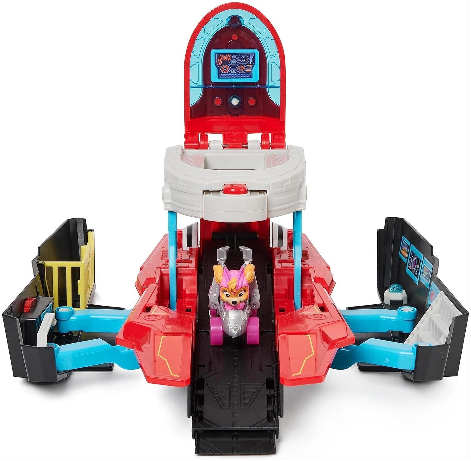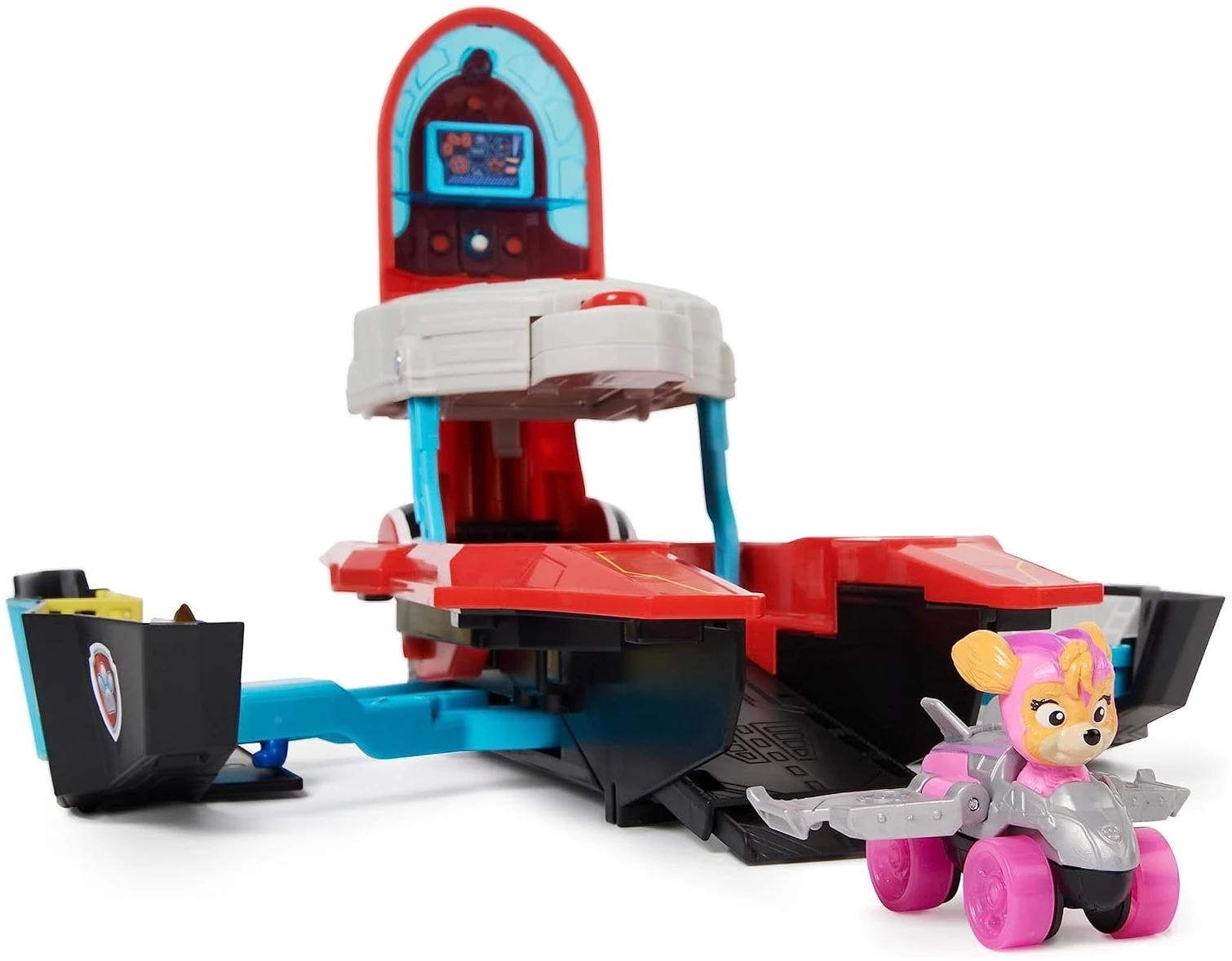 Le monde de la Pat’ Patrouille est réputé pour ses transformations divertissantes, et le Quartier Général Marine Pup Squad ne déroge pas à la règle. La magie opère lorsque votre enfant soulève le toit du QG et que, comme par enchantement, la salle de contrôle et la rampe de lancement se mettent en mouvement. Le Racer Pup Squad de Stella, inspiré fidèlement du film, attend sagement le moment de passer à l’action.