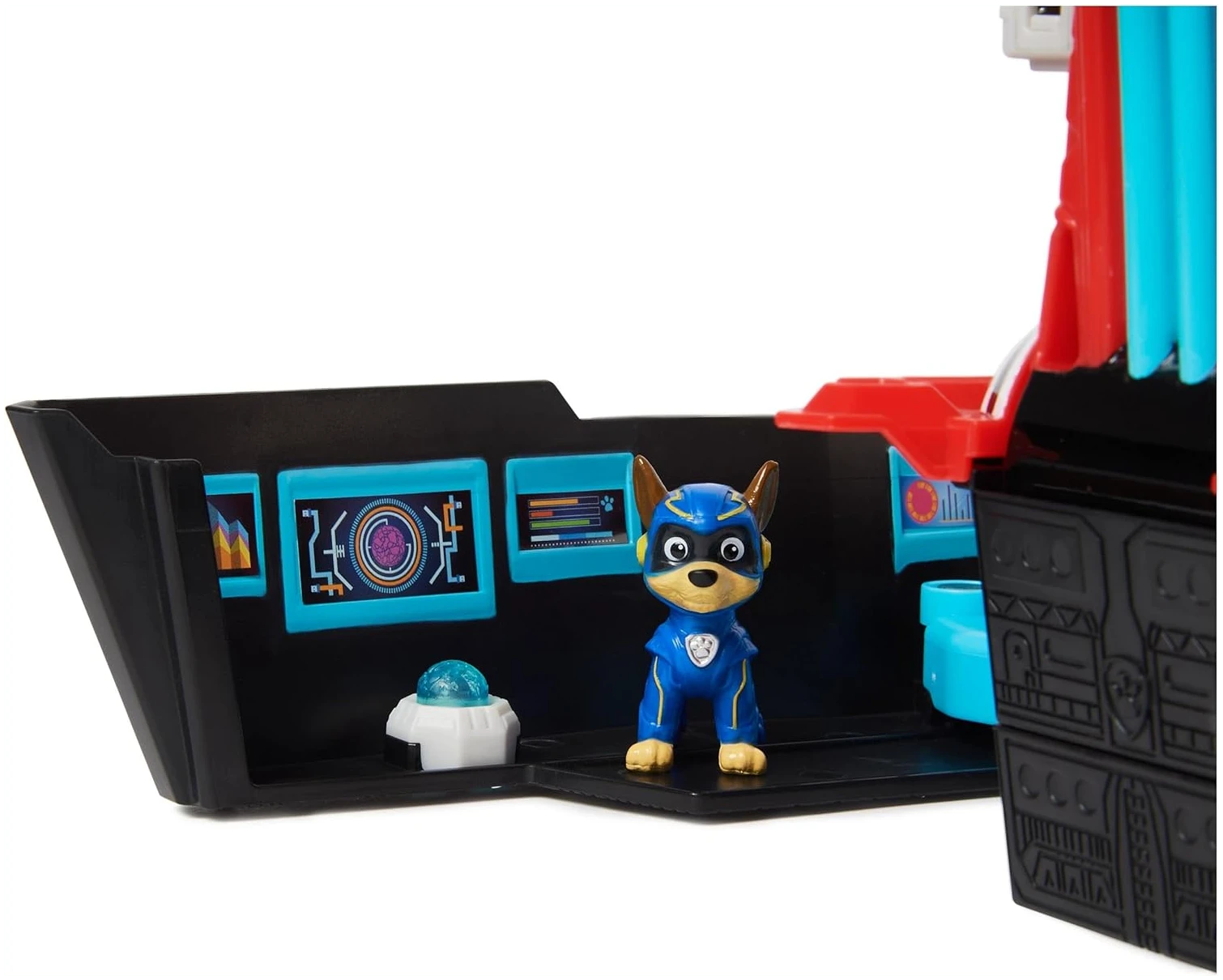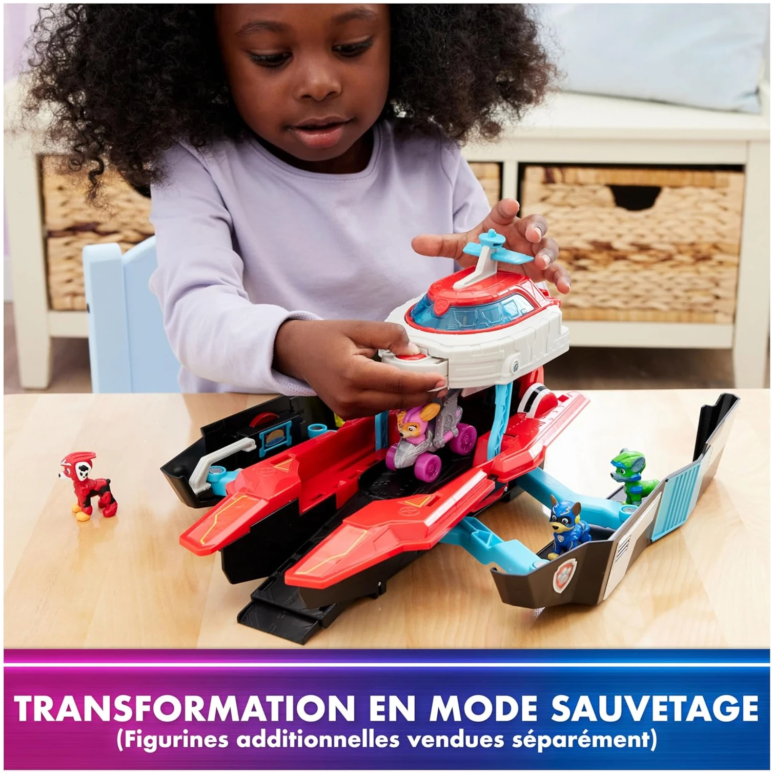 Mesurant plus de 38 cm de long, cette station de jeu se transforme de manière spectaculaire en mode sauvetage, promettant des heures de jeu ininterrompu. Avec deux pontons de jeu extensibles, notre petit aventurier peut soulever le toit pour dévoiler un univers riche en possibilités : des dortoirs dédiés pour reposer les chiots entre deux missions, un sélecteur de mission pour choisir le prochain sauvetage, un laboratoire à météorite pour des découvertes extraordinaires, et même une cellule de prison pour capturer les méchants imaginaires !